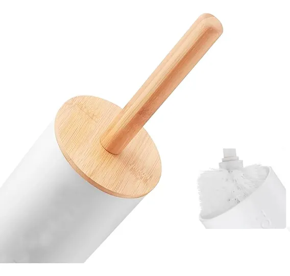 Escobilla Baño Cepillo Para Inodoro Plástico Tapa Madera