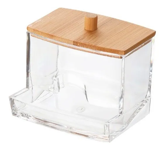 Organizador De Hisopos Acrilico Con Tapa Madera Moderno Caja