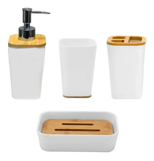 Set Juego De Baño Con Base De Madera Dispenser Jabonera